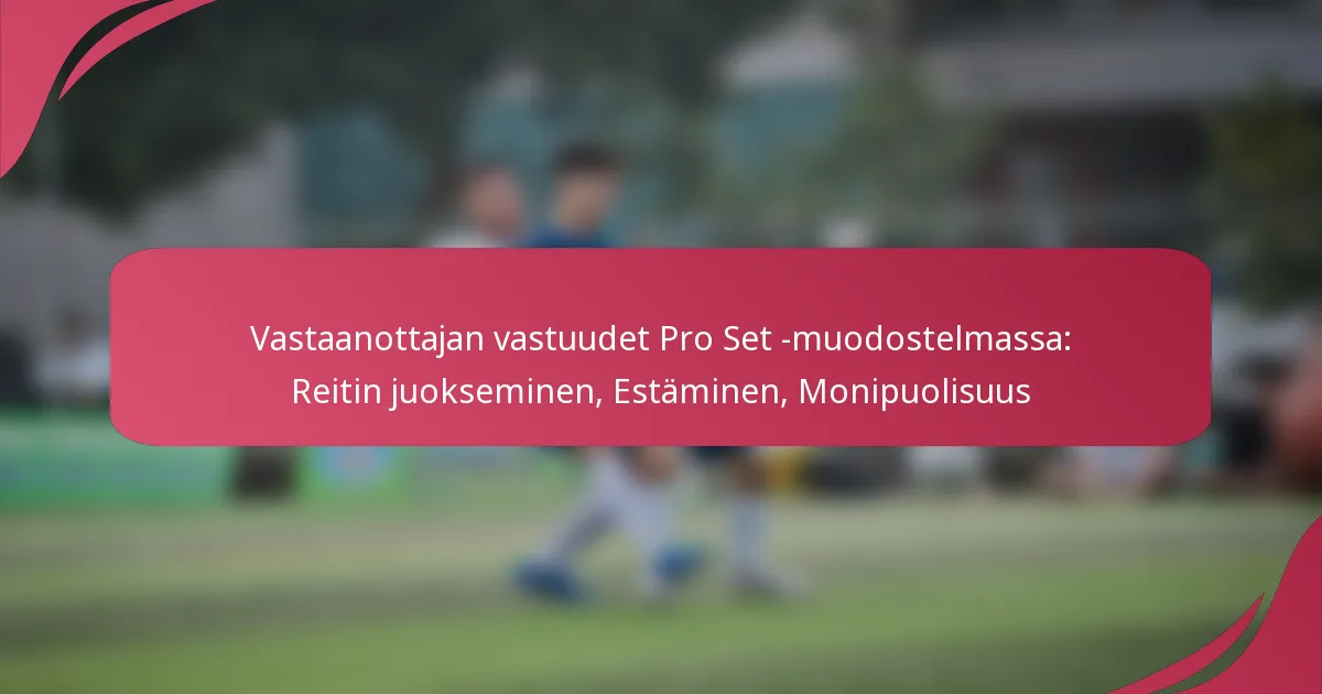 Pro Set -muodostelmassa vastaanottajilla on keskeisiä vastuita, jotka sisältävät tarkkojen reittien juoksemisen, tehokkaiden blokkien toteuttamisen ja monipuolisuuden osoittamisen. Heidän kykynsä sopeutua ja suorittaa nämä tehtävät vaikuttaa merkittävästi hyökkäyksen menestykseen.