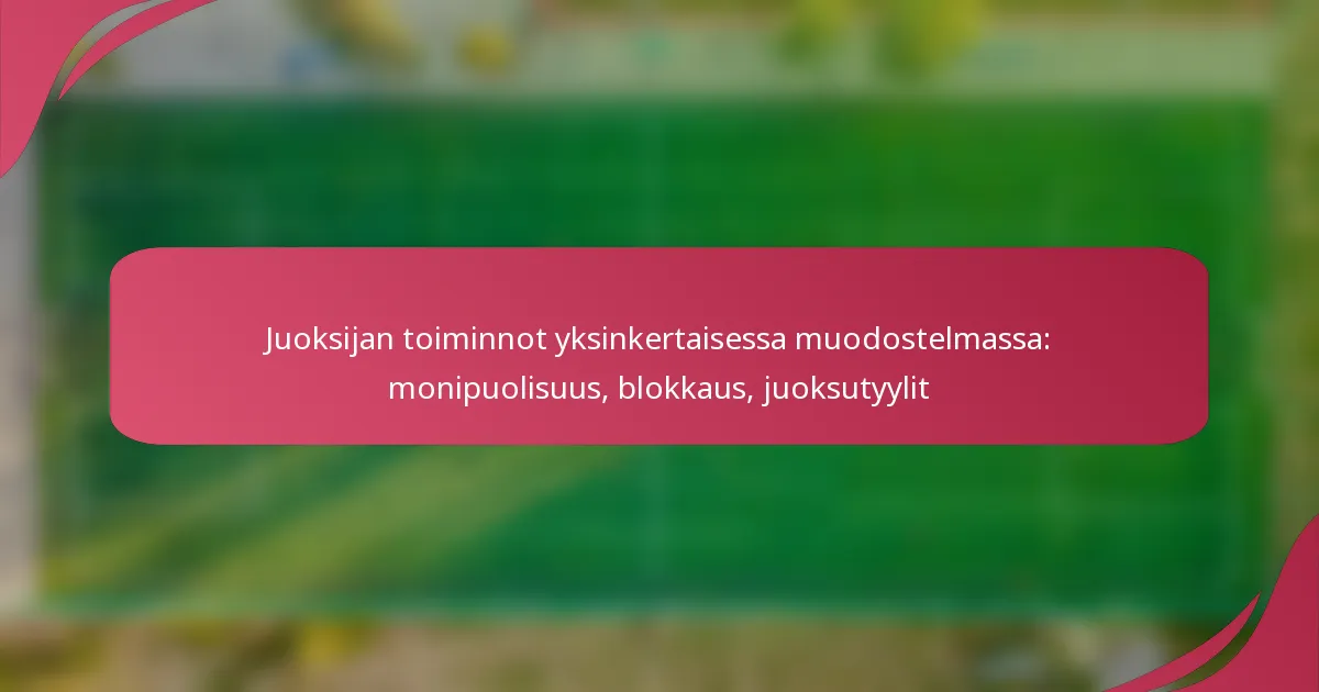 Singleback-formaatiossa juoksijat näyttelevät keskeistä roolia yhdistämällä juoksemisen, vastaanottamisen ja estämisen toiminnot. Heidän monipuolisuutensa mahdollistaa sopeutumisen erilaisiin hyökkäysstrategioihin, mikä parantaa sekä juoksu- että heittopeliä. Käyttämällä erilaisia estotekniikoita ja mukauttamalla juoksutyylejään he luovat mahdollisuuksia hyökkäykselle samalla suojaten pelinrakentajaa.