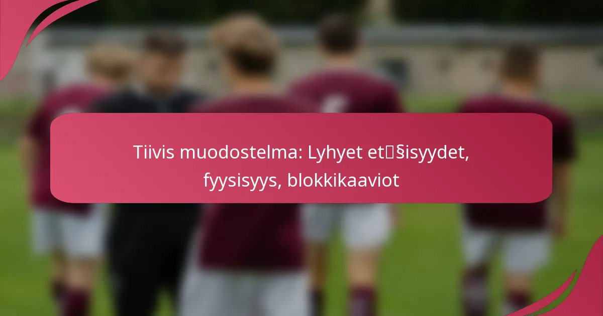 Tiukka muodostelma jalkapallossa viittaa hyökkäävään asetteluun, jossa pelaajat ovat sijoitettu lähekkäin, tyypillisesti useiden tiukkojen päädyssä tai täysivartisten pelaajien kanssa. Tämä asettelu korostaa fyysisyyttä ja vahvoja blokkauskaavioita, mikä tekee siitä tehokkaan lyhyissä tilanteissa.